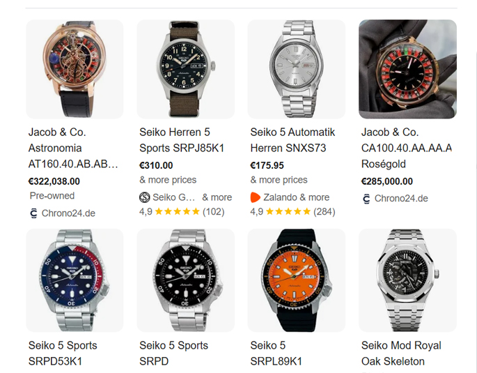 نمایش مستقیم محصول همراه با تصویر، قیمت و نام فروشگاه در نتایج جستجو